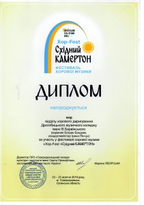 Вагомим заходом в цьому напрямку став фестиваль хорової музики Хор-Fest «Східний КАМЕРТОН», який відбувся з 23 по 25 жовтня 2019 року в Сєвєродонецькому коледжі культури і мистецтв імені Сергія Прокоф’єва за підтримки Українського культурного фонду. Основним завдання фестивалю, окрім концертної діяльності, був розгляд питань популяризації вокально-хорового мистецтва в різних регіонах, робота над творами сучасних українських композиторів, поповнення професійного хорового репертуару, подальшої співпраці між колективами Луганщини та західними областями, обмін досвіду по реалізації різноманітних культурно-просвітницьких програм. Саме тому в рамках фестивалю проводились круглі столи та семінари-практикуми з різноманітними майстер класами в містах Сєвєродонецьку, Сватові та Рубіжне.