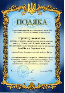 Серед запрошених хорових колективів був хор відділу хорового диригування Дрогобицького музичного коледжу імені В. Барвінського під керівництвом викладача-методиста, голови циклової комісії «Хорове диригування» Богдана Бондзяка, концертмейстер – Ірина Пінчук.