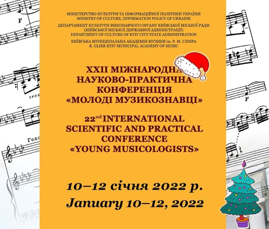 10 – 12 січня 2022 року на базі Київської муніципальної академії інституту музики ім. Р.М.Глієра було проведено ХХІІ Міжнародну науково-практичну конференцію «Молоді музикознавці», яка цього року відбувалась у рамках ІV Міжнародного науково-творчого проєкту «Музична культура сучасності: від наукового осмислення до репрезентації».