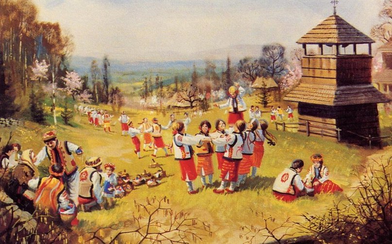 Інині на площах міст,біля храмів у Великодні неділю й понеділок, а інколи у вівторок та у Провідну неділю молодь і діти збираються на весняні забави.