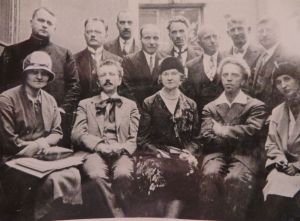 На початку 20-х років минулого століття філії Музичного Інституту функціонували у більшості великих міст краю. У перші роки свого існування ці філіальні школи були незалежні від центрального Музичного Інституту і діяли, виходячи із місцевих умов, наявності місцевих музичних сил. За ініціативи о.Сапруна 13 червня 1925 року в Музичному Інституті було створено Центральну шкільну комісію, куди увійшли директори музичних шкіл всіх філій. Ця комісія розробила питання для з’їзду директорів, який відбувся 19 червня 1925 року (фото 1. Учасники з’їзду директорів філій. Крайній зліва – о.С. Сапрун, сидять Ст. Людкевич і В. Барвінський). Із промовою на з’їзді виступив о.Сапрун, який основну увагу звернув на питання діловодства у філіях. Було прийнято стандартну назву для всіх філій: Музичний Інститут Товариства ім. Миколи Лисенка у Львові, філія у… Впроваджено лекційні щоденники, в яких вчитель записував пророблений на лекції із учнем науковий матеріал. Учні так само вели індекси (списки), в яких подавали пройдений і вивчений на лекції науковий матеріал, і які затверджувалися підписом вчителя. Подано також редакцію свідоцтв єдиного зразка для всіх шкіл, відредаговану В. Барвінським та Ст. Людкевичем.