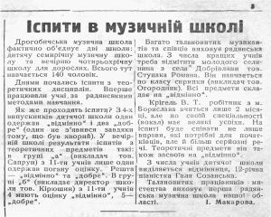 В. А. Моцарта, Дж. Верді, Ф. Мендельсона, що свідчить про високий рівень виконавців [1, с. 598]. Поступово кількість учнів (елевів) збільшувалася і в останні роки досягала понад 70-ть осіб. У звіті доктора Станіслава Людкевича, який інспектував школи філій, було відзначено велику кількість здібних учнів у дрогобицькій школі, але, на жаль, це переважно були «елєви із ліквідованої польської музичної школи» [1, c. 146].