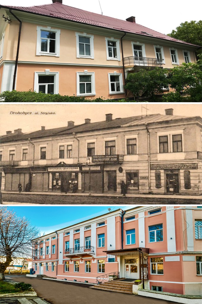 Дрогобицька філія Музичного Інституту розташовувалася у приміщенні Народного Дому, який знаходився за адресою в. Стрийська, № 18 (в радянський період – в. Дзержинського). Сьогодні на цьому місці знаходяться службові приміщення Львівського обласного академічного музично-драматичного театру ім. Ю. Дрогобича (фото 3-4). Ймовірно, частина занять проходила у кімнатах за адресою площа Ринок, про що свідчить оголошення у часописі Chwila від 17.09. 1925 року (фото 5). Філія проіснувала до 1939 року. Із приходом радянців філія отримує статус «7-річна дитяча музична школа» (фото 6, фото 7. Оголошення в часописі «Більшовицька правда» від 24.07. 1940 р.), в якій продовжують працювати окремі учительські сили, зокрема, о. Сапрун (до 1941 року) (фото 8). Школа діяла і в роки німецької окупації (фото 9).