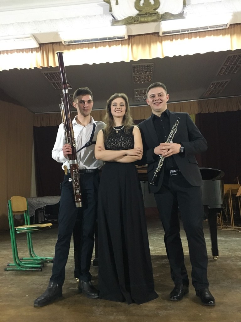 У проекті взяли участь яскраві молоді музиканти – Юрій Федорків (фагот), студент 4 курсу кафедри дерев’яних духових інструментів Національної музичної академії України ім.П.Чайковського, клас доцента Юрія Дондакова та Павло Андрейко (гобой), студент 4 курсу кафедри духових та ударних інструментів Львівської національної музичної академії ім.М.Лисенка, клас професора В’ячеслава Цайтца. Зауважу, що наші гості, Юрій і Павло, також випускники коледжу 2014 року, відділу оркестрових духових та ударних інструментів, клас старшого викладача Романа Гуча. Вони – лауреати всеукраїнських конкурсів виконавців на духових інструментах, здобувачі освітньо-професійного рівня бакалавр.