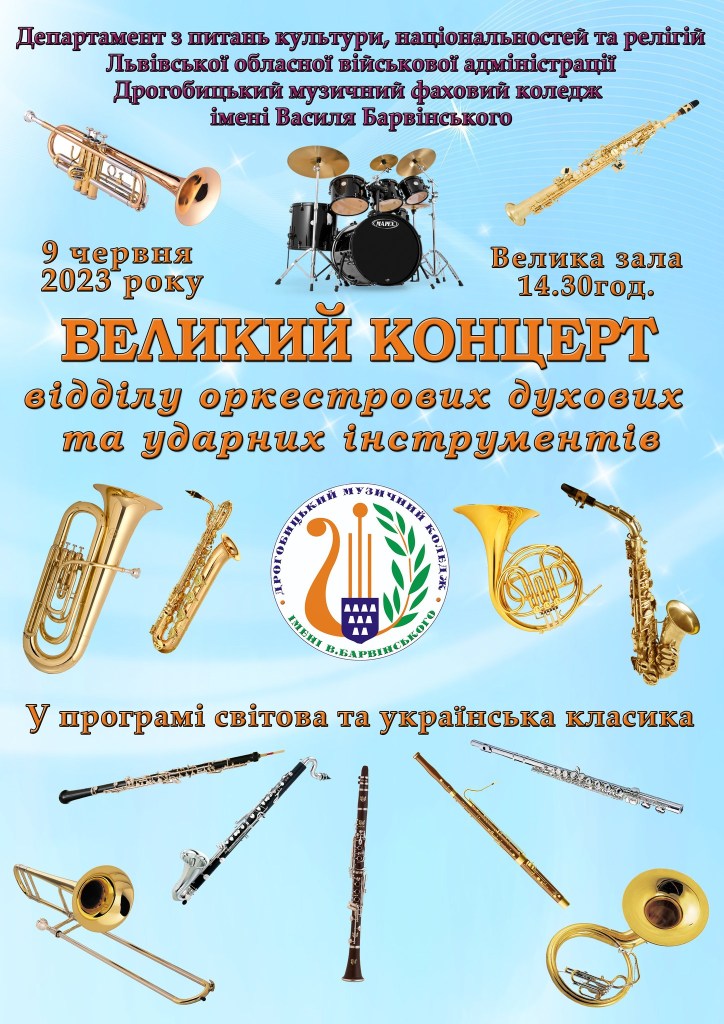 Українська частину наповнили цікаві і різнохарактерні твори, пройняті рідним нашій душі мелосом. Слухачі мали можливість почути «Поему» Ж. Колодуб у виконанні флейтиста Дмитра Бабія в супроводі Галини Лесів (викладач – Любов Мись), «Мелодію» Б. Лятошинського у виконанні гобоїста Максима Кіф’юка в супроводі Ольги Мазур (викладач – Павло Андрейко), «Скерцо» В. Гомоляки у виконанні кларнетиста Миколи Кіхтана в супроводі Ольги Мазур (викладач – Назар Казів). Дует кларнетистів у складі: Юліан Колінко – Денис Левицький у супроводі Олени Денис (викладач – Мар’ян Колінко) виконали концертну п’єсу «А-ля Фейдман» композитора І. Костлана. У виконанні тубіста Юрія Зозулі (викладач – Олег Когут) в супроводі Богдани Жукевич пролунав тужливий «Вокаліз».